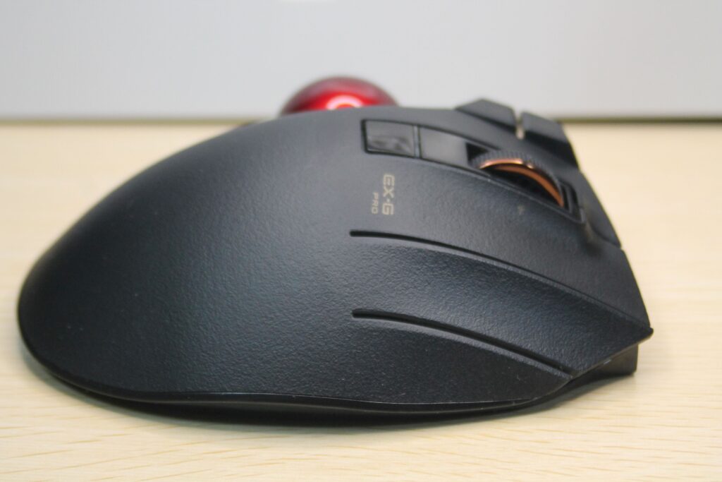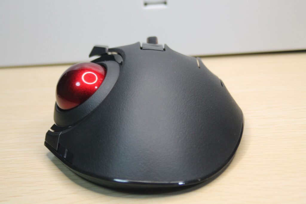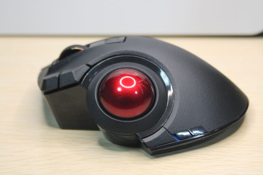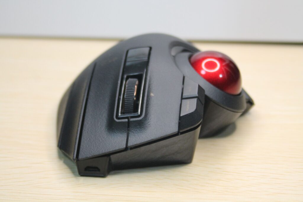 スクロールのホイールを左右に動かすことができ、Excelシートなどを左右にスクロールできたりします。また、薬指にあるボタンを押しながらボールを回すとポインターの移動距離を微小にすることができます。